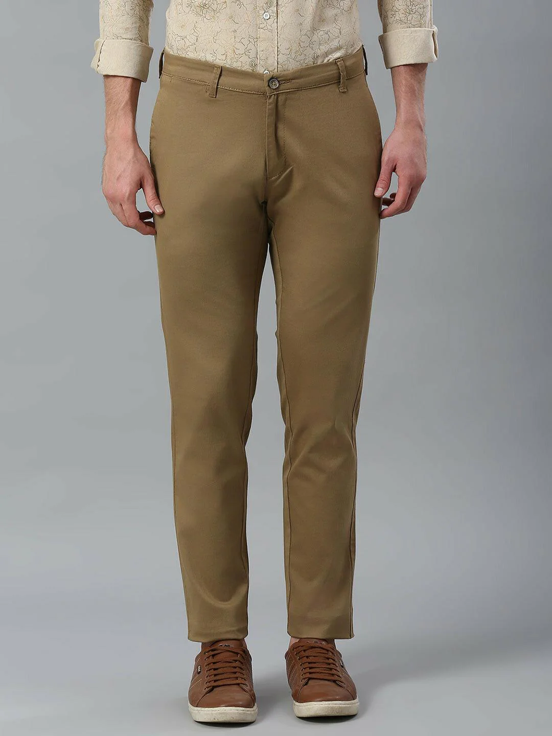Stretchable Beige Narrow Chino Pants