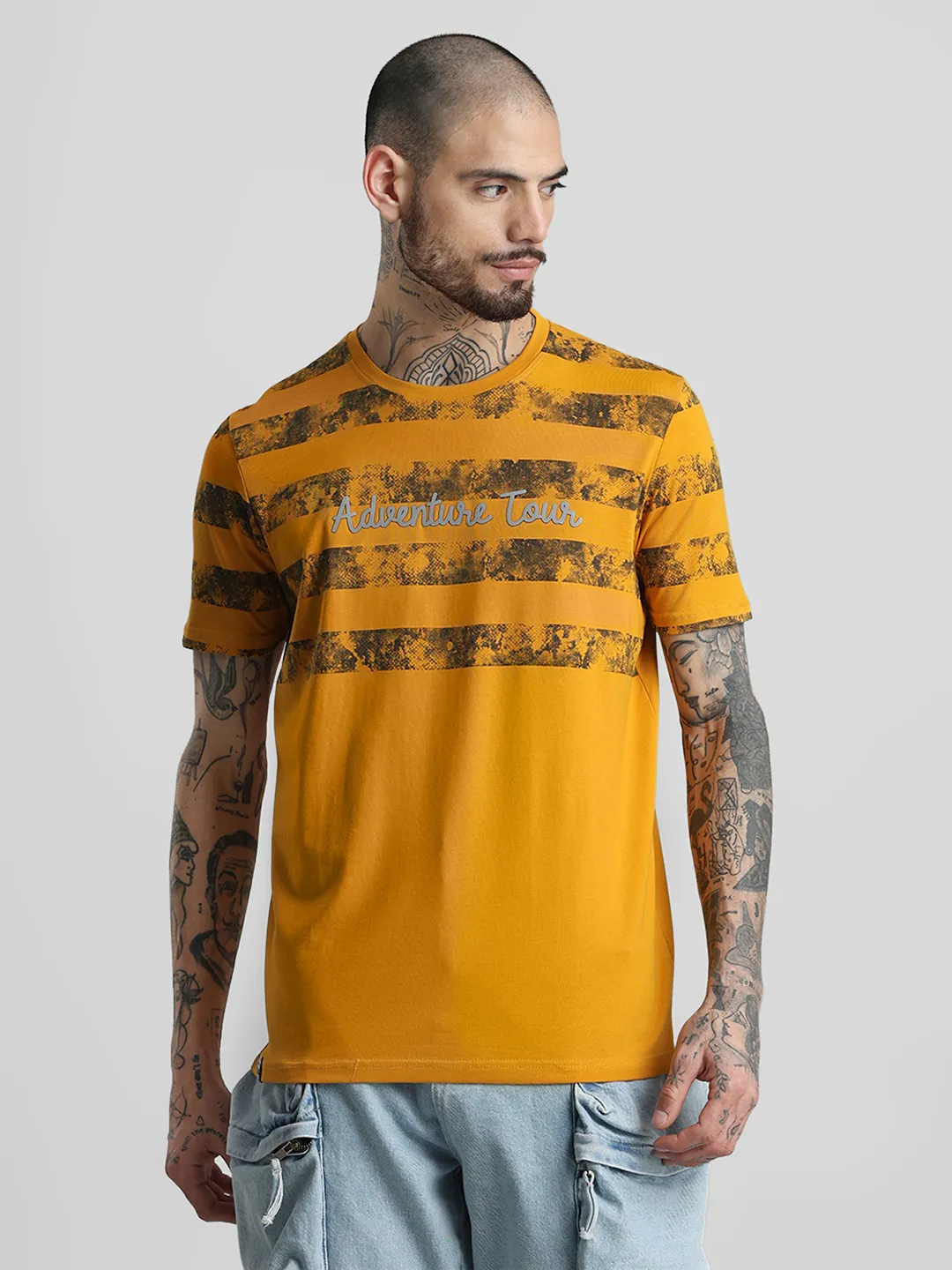 Mustard Printed Crew T-Shirt