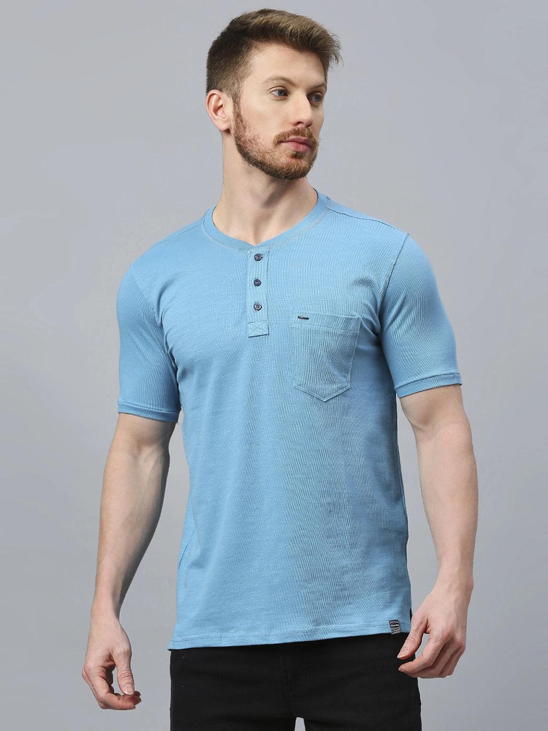 Premium Electric Blue Henley T-Shirt